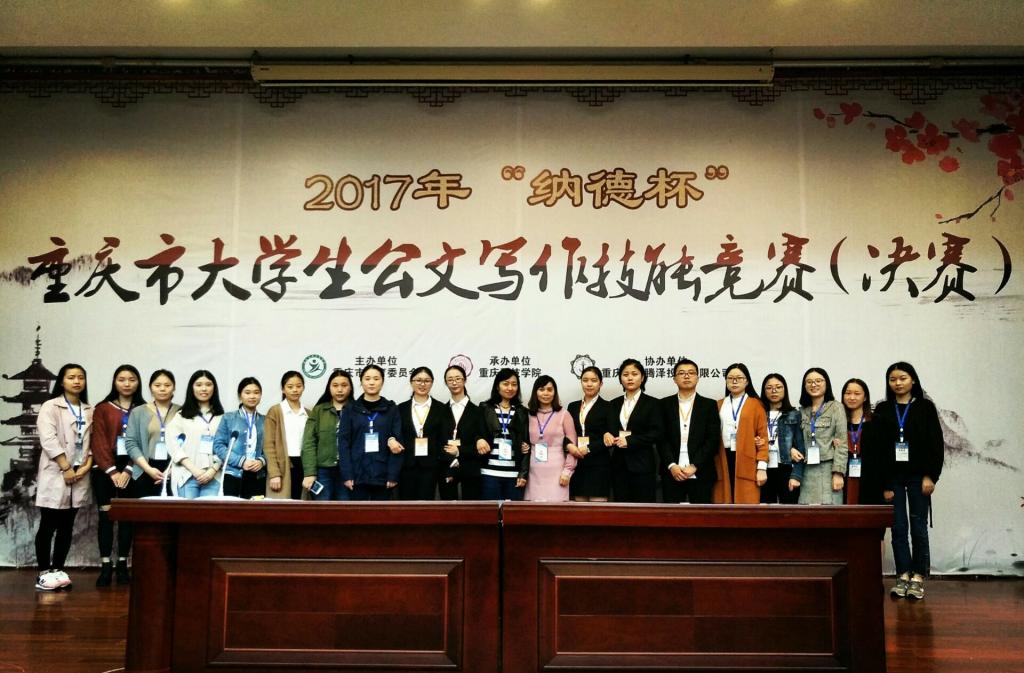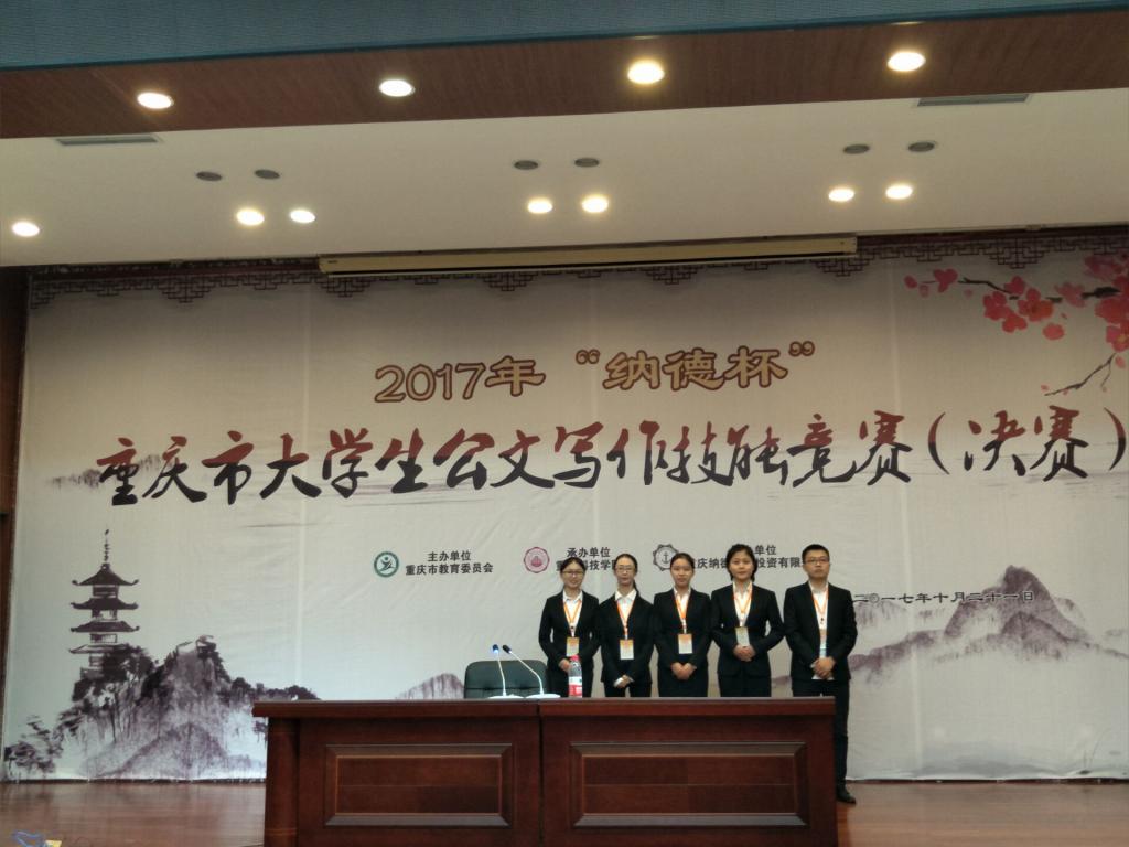 长期以来,学校高度重视学科竞赛在人才培养中的作用,通过鼓励支持师生参加各类高水平竞赛,以达到以赛促学、以赛促教的目的。2017年的“纳德杯”重庆市老员工公文写作技能竞赛分为初赛和决赛两场,为在此次竞赛中取得良好成绩,公司在接到竞赛通知后就制订了详细的工作方案,陆续开展了竞赛的组织宣传、选手选拔、集中培训等一系列工作,组建了由何萍、彭品荣、吴鹏老师三位专业教师构成的专门培训队伍,在知识技能、答题技巧、应战配合等方面对参赛选手进行了全方位辅导,最终在师生的共同努力下,获取佳绩,为学校争得荣誉。