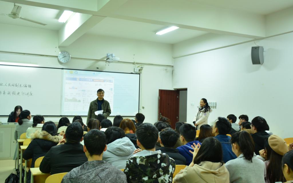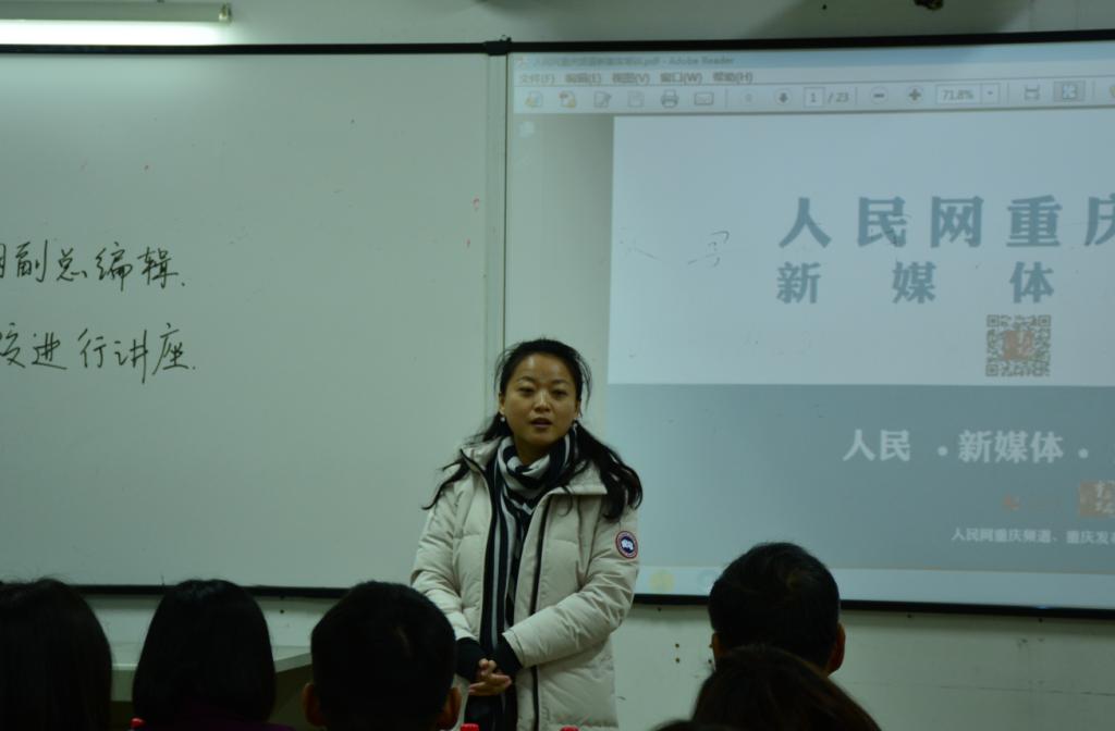 12月7日下午14点30分,人民网副总编辑曹阳做客重庆师范大学涉外商贸学院,在6211教室和新闻专业的师生们畅聊新媒体时代下的新闻策划以及分享个人的从业心得。
