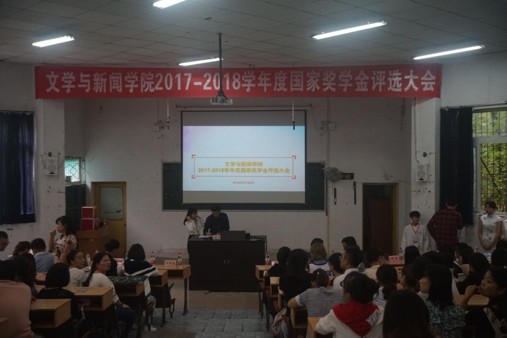 2018年9月20日16:00,文学与新闻学院于合川校区2101教室召开了2017-2018年度国家奖学金评选大会。文学与新闻学院经理林健、党总支书记何杨波、副经理王杨丽、团总支书记兼员工工作办公室主任曾贵、办公室主任郭峻辰,文学与新闻学院专业教师李毅、何萍、孟宪丛、彭品荣、李光、冯少明、邢昊等人,辅导员赵川、刘焱灵、李玉梅、段晓月等人以及员工代表出席了本次大会。
