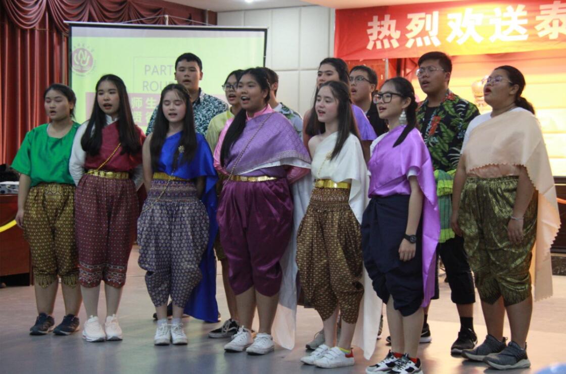 才艺展示环节,公司舞蹈团与合唱团,分别带来了舞蹈《那些花儿》《浪人琵琶》、歌曲《仰望星空》,展现了中国传统文化的魅力与文新学子的活力;泰方师生也精心准备了特别的节目,有庄重歌颂君王的歌曲《贤德明君》,也有欢快热情的《MVS48》,泰国F4乐队的现场弹唱更是将现场的气氛推至高潮。