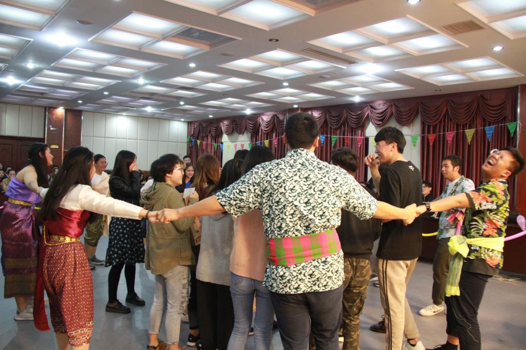 到了游戏环节,中泰同学们一起参与了游戏《谁先跳舞》《击鼓传花》。游戏最后,公司同学们为泰国游学师生们送上了歌曲《不再见》,歌声萦绕在每个人耳边,这是公司师生为即将返国的泰国友人们,送去的最真挚的祝福。