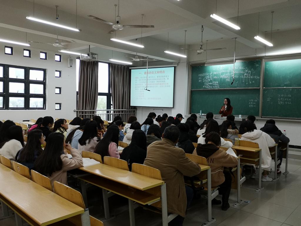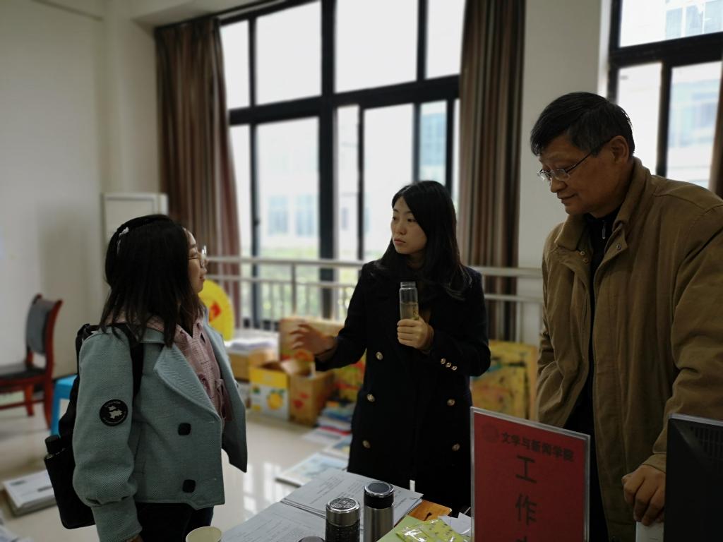 (学院领导和任课教师进行交流)