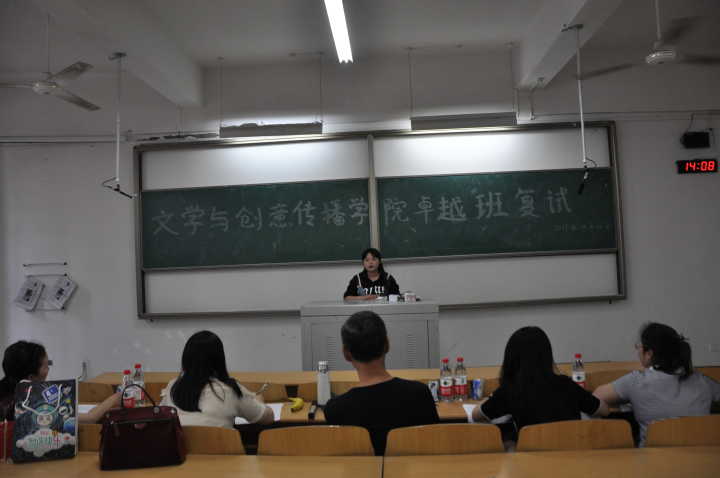 下午的复试在A102进行,林健经理、王杨丽副经理、两位校外专家和彭品荣老师担任评委。复试以答辩的形式进行,旨在考查同学们的口语表达及临场应变能力。评委向面试同学提问,同学们针对评委所提的问题进行回答。通过激烈的角逐与评委严苛的选拔,最终30名同学脱颖而出。