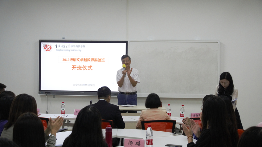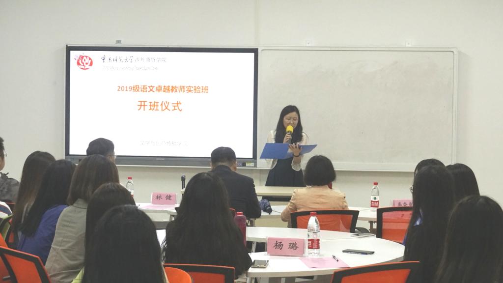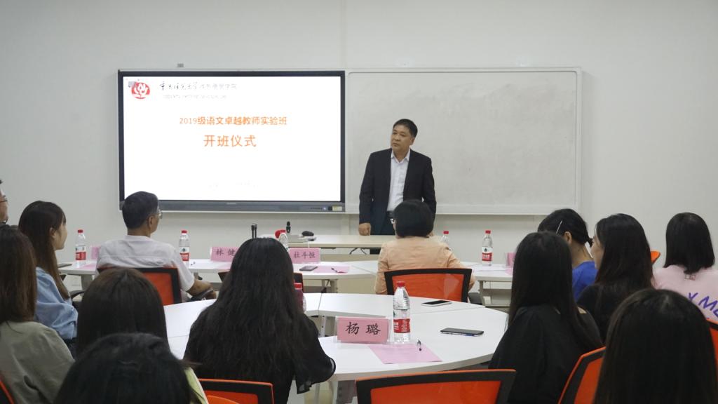 9月21日晚七点,公海gh555000aa线路检测中心在9教506教室举办2019级语文卓越教师实验班开班仪式。学校副董事长杜斗恒、公海gh555000aa线路检测中心经理林健、公海gh555000aa线路检测中心副经理陈寿琴、文创团总支书记李香贞、十位卓越班优秀教师以及2019级卓越班全体员工参加了此次开班仪式。