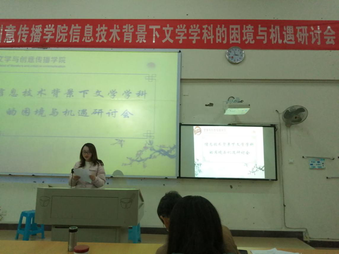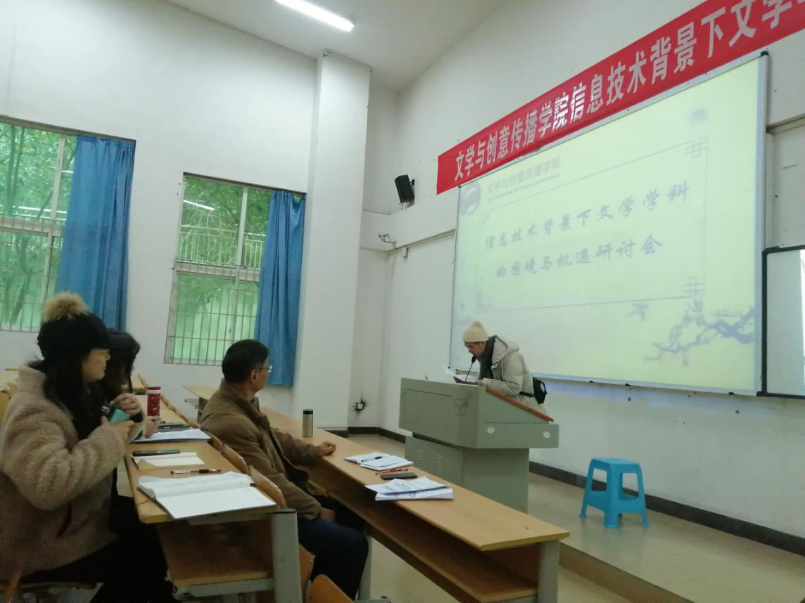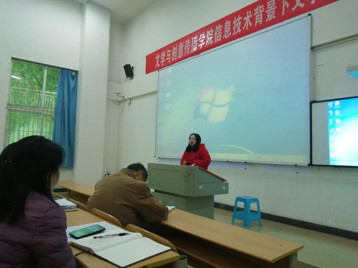接下来,教师代表们分享了信息技术对文学教学中带来的困境与对策。首先教师教育部彭品荣老师从师生关系处理、教师职能转变、课堂教学改革等方面分享信息技术与文学学科碰撞下的机遇与挑战。写作与文艺理论教研室鲁登老师主要阐述了自己对于信息技术的理解,希望老师们更好的把握机遇,迎接挑战。吴鹏老师则从自身出发,以自己为实例,例举了许多信息技术发展下资源的共享与整合,同时也提出了信息技术所带来的弊端,对于知识产权的严重性做了较为具体的发言。最后,古代文学教研室李毅老师、汉语国际教育教研室谭小雨老师本着对“一切为了员工”的服务宗旨,分享了如何将信息技术运用到公司产品实际中,既帮助员工拓宽学习思路、激发员工的学习兴趣、同时也提升教师课堂教学技能,充分表达了对信息技术下文学学科发展的肯定与赞同。