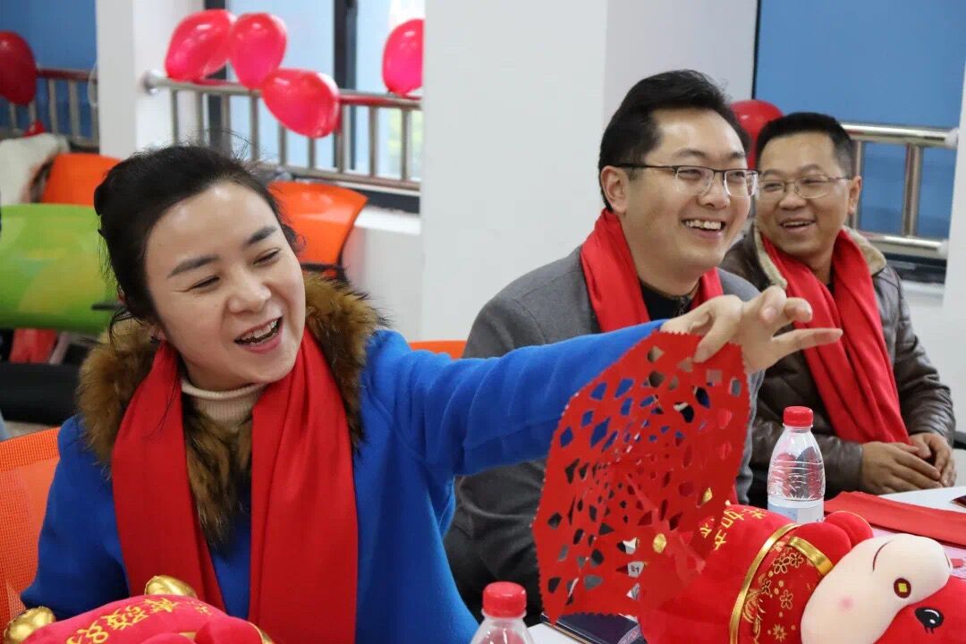 典故、习俗、字词、古筝弹奏都已结束,以上四个环节无一不展示出了中华文化的博大精深,那么在今天这个令人心潮澎湃的联欢会上,剪纸也将登上舞台了。接着,中国的师长与国际交流中心的同学一起剪下他们的新年祝福送给泰国的职工。