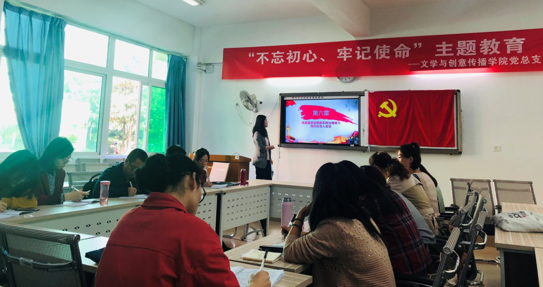 支部书记王杨丽从三个方面讲解了关于十九大对党章做的重大修改。课程主要从学习贯彻新《党章》的重要意义、新《党章》的主要修改内容及解读、现阶段我们如何充分运用新《党章》的内容精髓指导支部党组织建设这三个方面进行讲解。