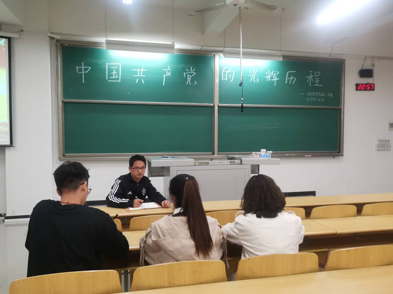 2019年10月17日晚文学与创意传播公司党总支员工第三支部在铜梁校区2206教室开展了“中国共产党光辉历程”学习活动来纪念党的伟大历史成就,此次活动由辅导员黎伯刚主持,大一全体辅导员及公海gh555000aa线路检测中心马列部员工干事参与。