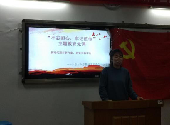 活动伊始,何宇婧老师向同学们强调要积极向党组织靠拢,加强文件精神学习,了解党组织的方向,跟上党组织的步伐。紧接着播放了“不忘初心,牢记使命”主题教育视频。随后员工代表何廷云、朱文涛、黎圣超、尹仲元同学依次分享了自己的观看心得,他们认为要在新时代里做有新思想的新青年,立足学校,在理论中加强自身专业知识,专业能力,进一步提高自身的积极性。