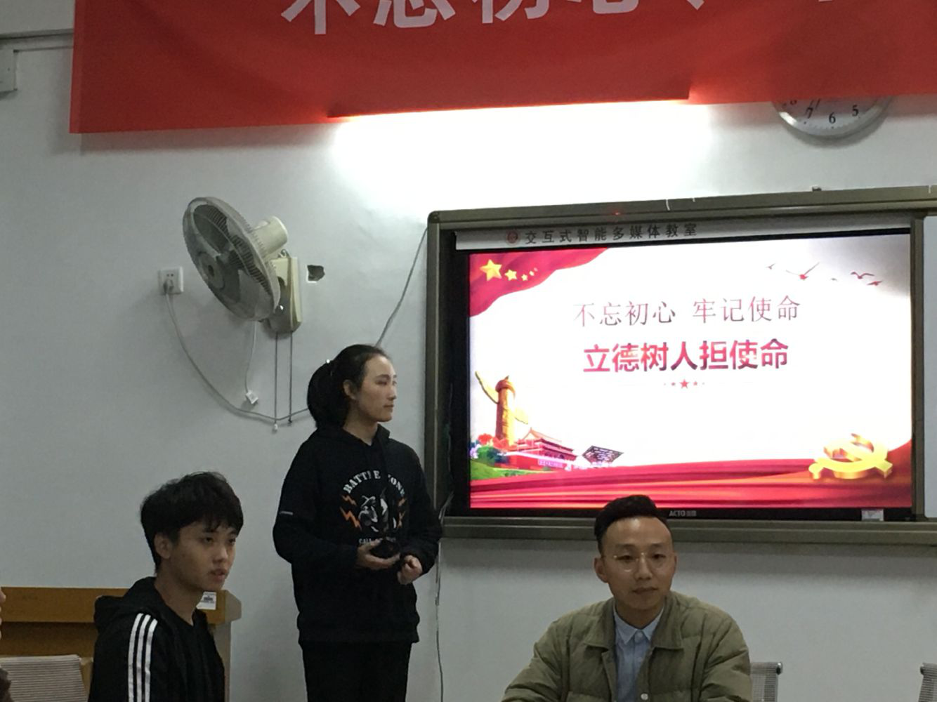 郭铭觅同志还分享了自己的学习心得,做好一个老师要具有责任感、意志力、思考力是基本条件。部分党员同志发表了自己的学习心得,分享了自己学习立德树人的感想。蒲昱含同志发表感想:即将成为教师,要从自身做起,严格要求自己,奉公守法,遵守社会公德。忠诚人民的教育事业,为人师表,当好员工的榜样,在员工的思想政治教育工作中作出贡献。最后以习近平主席提出的“一个人遇到好老师是人生的幸运,一个学校拥有一个好老师是学校的光荣一个民族源源不断涌现出一批又一批好老师是民族的希望”结束了这段演讲。