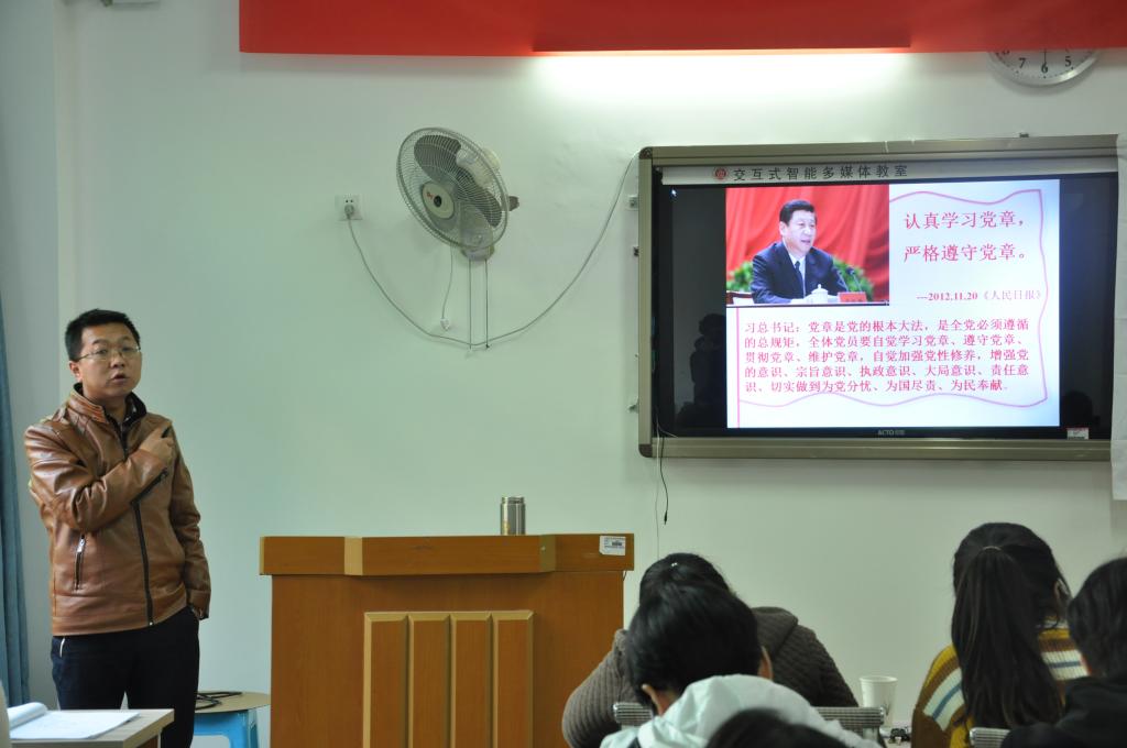 “党章是党的根本大法,是全党必须遵循的总规矩,是指引我们前进的准则,是我们为之坚守的初心”,何杨波书记首先从强调党章的重要性入手。随后从党员的性别、民族和学历、年龄、入党时间、职业等几个方向为党员详细讲解了党员队伍建设、发展、党内表彰等情况。他提到,当前党员队伍年轻化、高学历化的趋势代表着高校成为了党员的一个重要输出地,希望大家充分发挥党员干部“传帮带”的示范作用,积极培养、发展员工党员。他还强调,大家要以《党章》为根本,紧密结合实际,坚持以人民为中心,践行为人民服务的宗旨,时刻规范自己的行为,充分发挥党员先锋模范作用,以自己的模范行为影响和带动身边的群众、员工共同进步,促进各项工作持续、稳步发展。