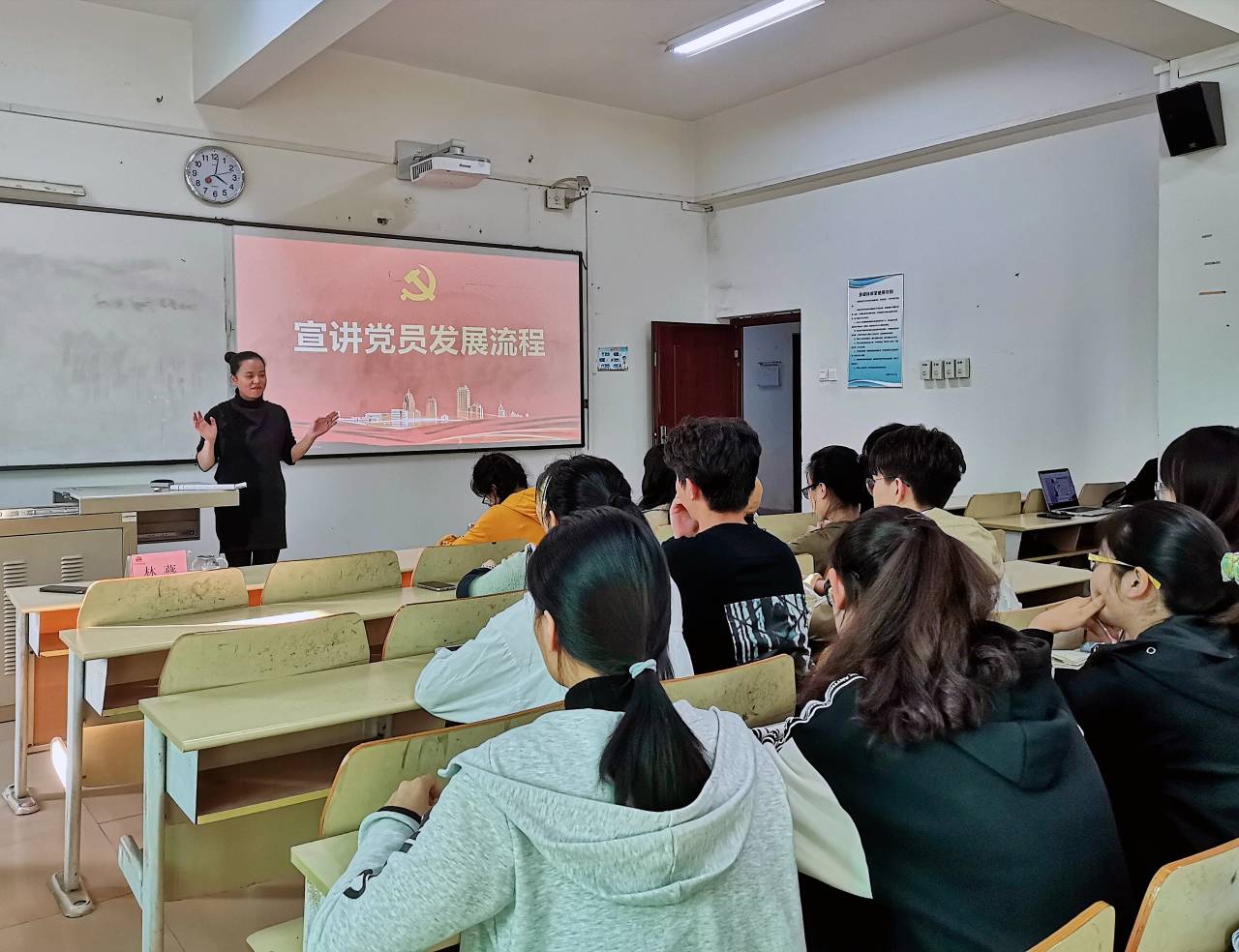 最后,支部组织委员林燕老师为积极分子们细致地讲解了党员发展流程。林燕老师以“知者行之始,行者知之成”鼓励同学们同学要以自身实际行动出发真正做到“积极”二字,党支部也将严格把关,为党注入真正有价值有意义的新鲜血液。