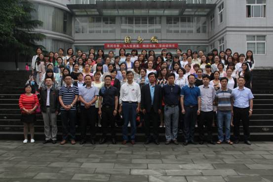 参会人员在重庆师范大学涉外商贸学院图书馆A馆合影