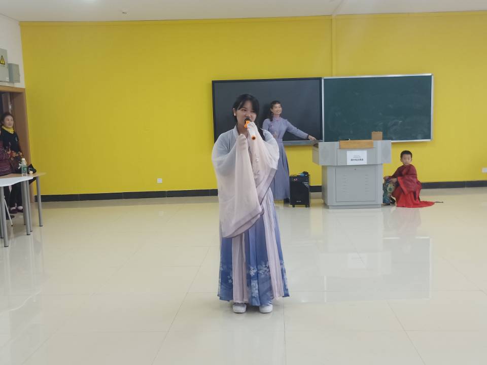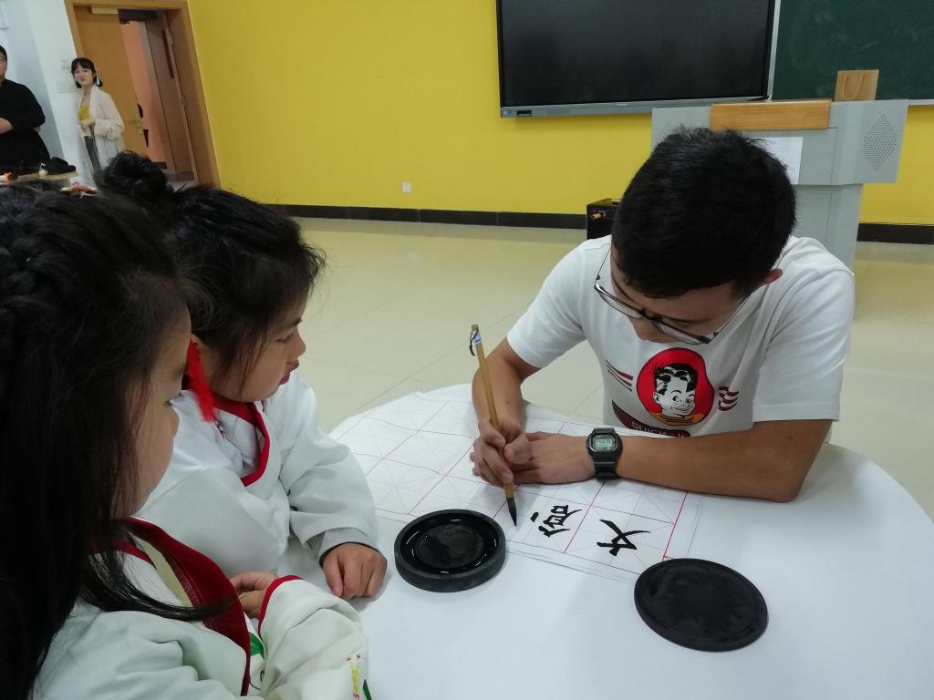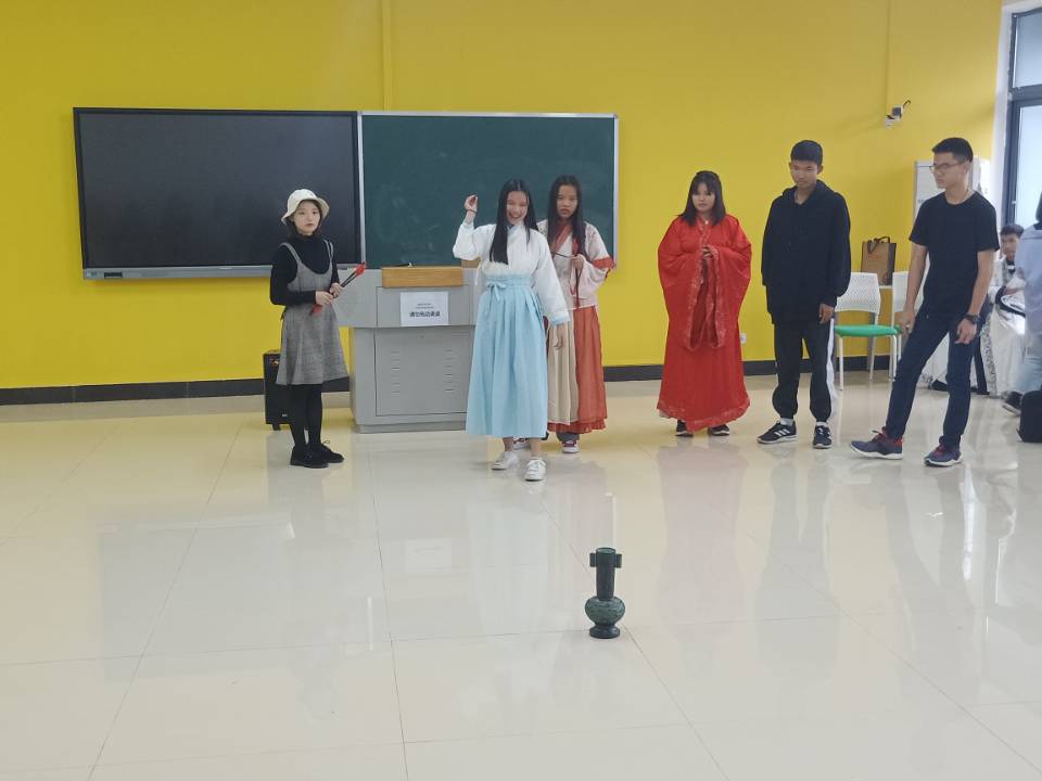 通过教学游戏,旨在增长泰国游员工们学习的兴趣及见识。在古代传统民俗游戏环节中,中泰双方纷纷展示了个人才艺,拉进了彼此之间的距离。紧接着,又进行了古典舞蹈和走秀表演,志愿者与泰国游员工们身着温婉柔美的汉服,行走间裙摆飘逸,风情万千,彰显了汉服所独有的韵味和美感。最后在王志坤同学的毛笔字展示中,结束了今天的兴趣课堂。
