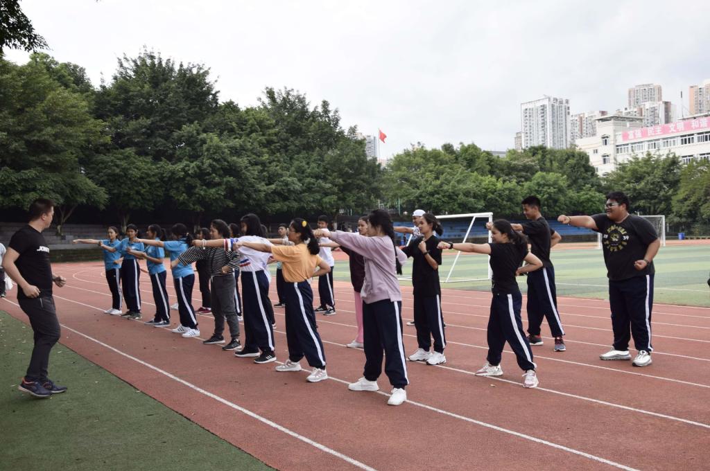 游员工们积极配合老师,认真训练,一遍遍的喊着口号。在每一个出拳与收拳的来回中,感受了中华民族的无穷魅力与磅礴的体育精神;在汗水的挥发之下,体验了重庆师范大学涉外商贸学院的热情好客。