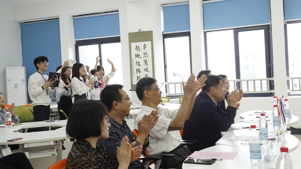 到了双方表演节目的环节,泰国职工为我们带来了中文歌曲《甜蜜蜜》,他们悠扬的歌声,扎实的中文功底,悠扬的旋律在教室中回荡。而他们的笑容正如他们的歌名一样甜蜜。国际交流中心的同学们为泰国交流生唱了一曲《朋友》,以此表达我们与泰国职工深厚的友谊。泰国职工们纷纷打开了手机闪光灯跟着歌声晃动,场景温馨而又和谐。