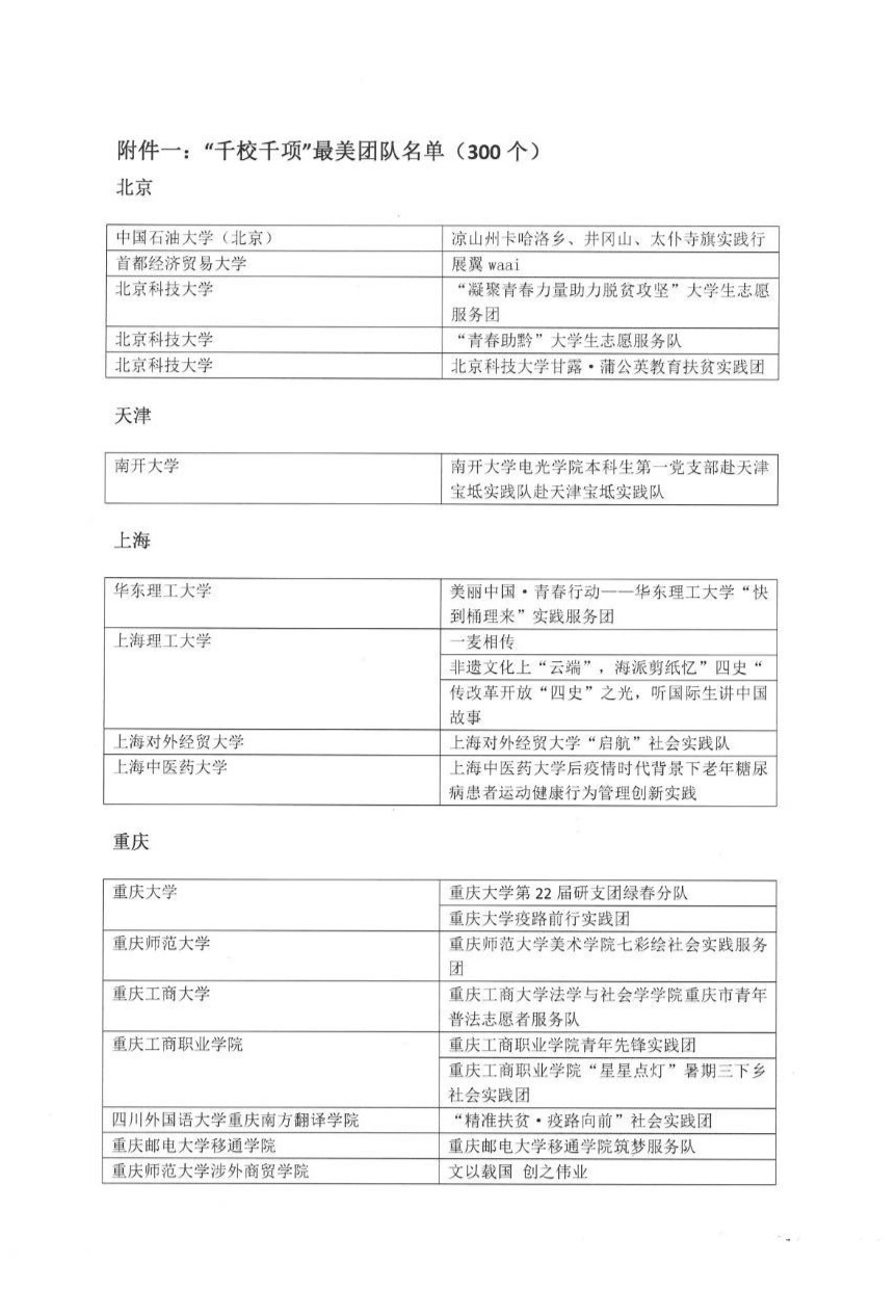 千校千项“最美团队”获奖文件截图