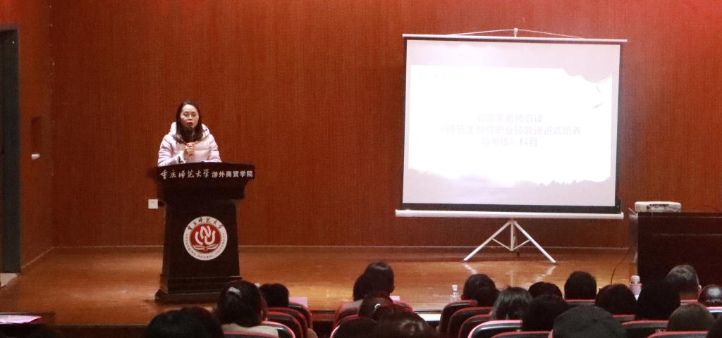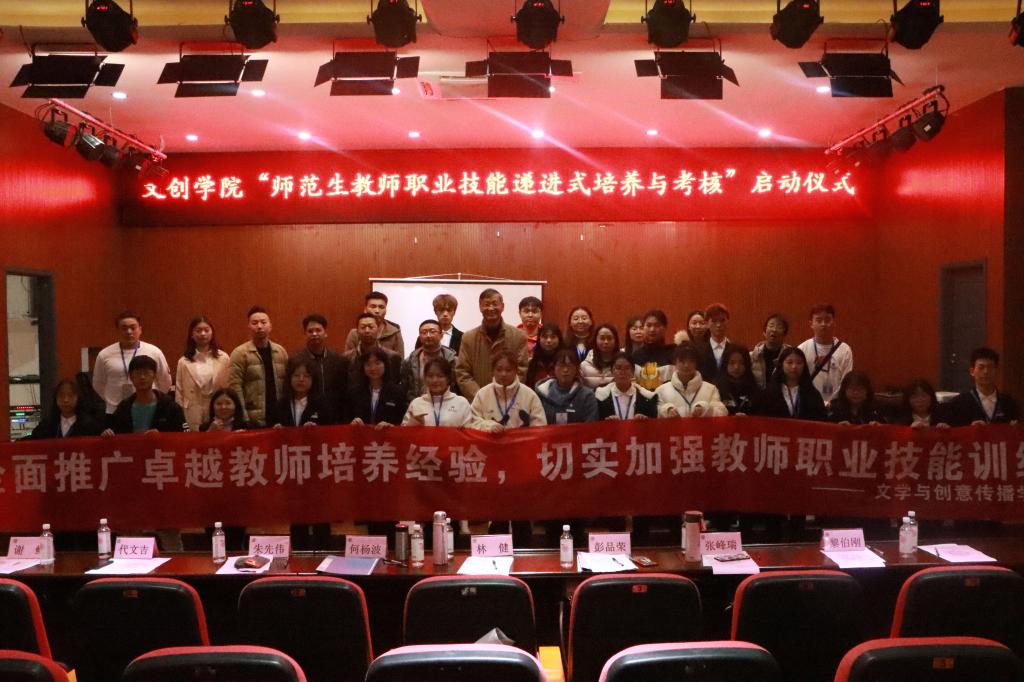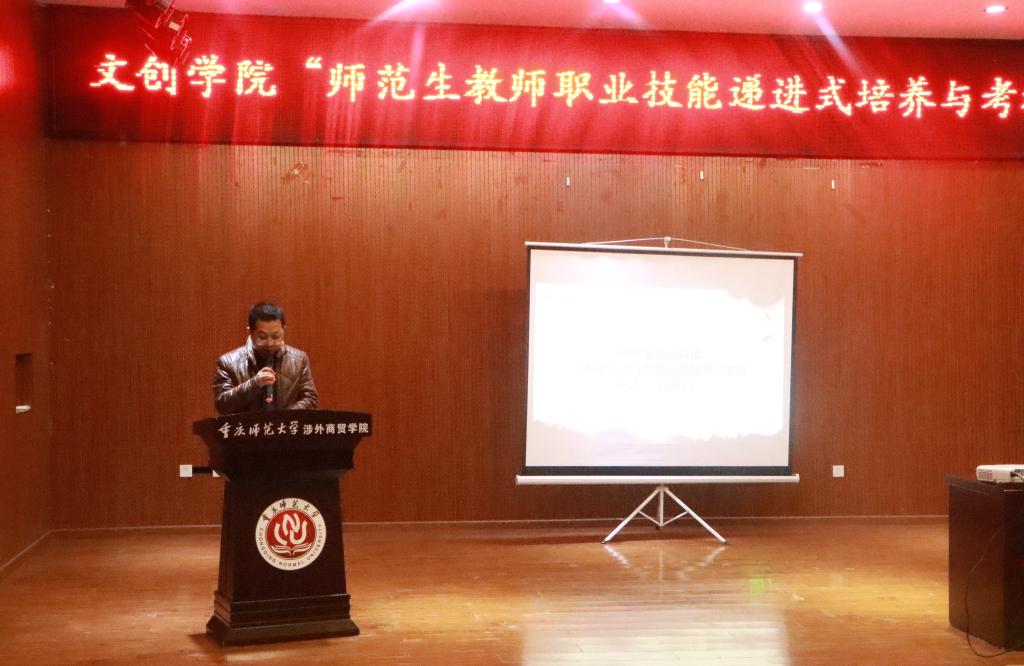 公海gh555000aa线路检测中心从2020级开始正式启动“师范生教师职业技能递进式培养与考核”项目,启动仪式于2020年12月3日下午在铜梁校区举行。学院经理林健教授、党总支书记何杨波、教师教育部主任彭品荣、特邀嘉宾优秀毕业生朱先伟、张峰瑞及铜梁校区辅导员出席了本次启动仪式,2020级师范专业各班班委、寝室室长及员工代表参加了大会。