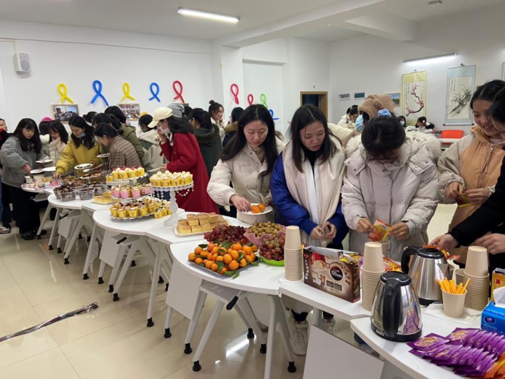 精心准备的食物、温馨的现场布置,让同学们刚走进教室,就眼前一亮,备考的紧张情绪瞬间得到缓解,欢心的融入到这场轻松愉快的慰问活动中。