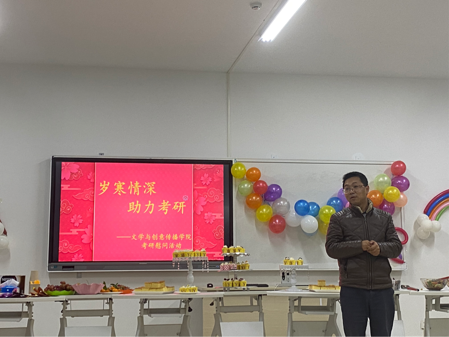 活动伊始,经理林健教授上台发言,他表示自己对同学们坚持不懈,认真努力,刻苦学习的行为感到自豪,嘱咐同学们在最后时刻一定要注意身体,强调保暖、保温,预祝同学们取得优异的成绩。党总支书记何杨波上台表达了对考研同学们的期望,希望各位学子们做最后的冲刺准备,力争实现自己的考研梦想。同时提醒同学们劳逸结合,调整状态,放平心态,积极应考。相信同学们熬过寒冬腊月,待到来年春暖花开时,好消息必定纷至沓来。