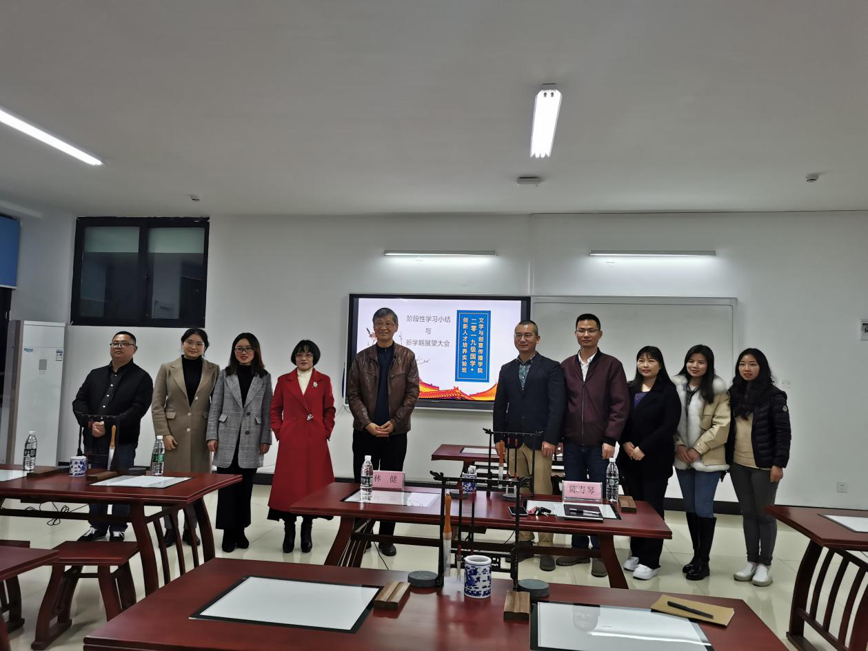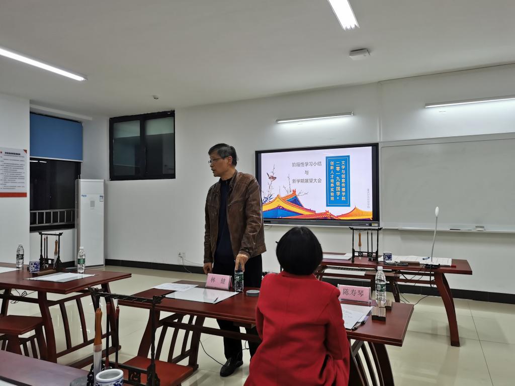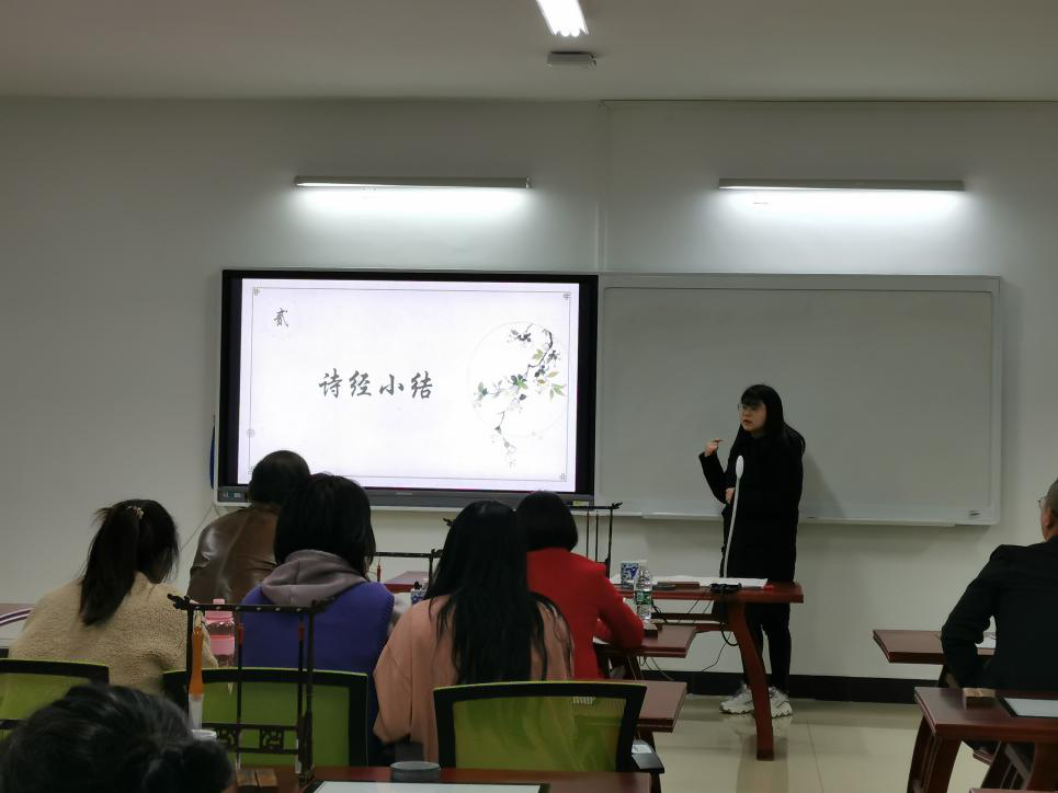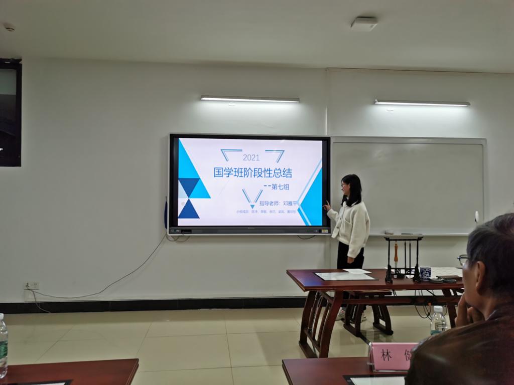 会议伊始,吴鹏老师介绍了国学班在过去几个月的整体学习情况以及本次大会的目的,并简述了本学期对员工们的展望。老师们入座后,由陈秀琴副教授讲话,鼓励这次大会员工们畅所欲言,至此大会开始,各小组成员代表依次上台进行汇报演讲。