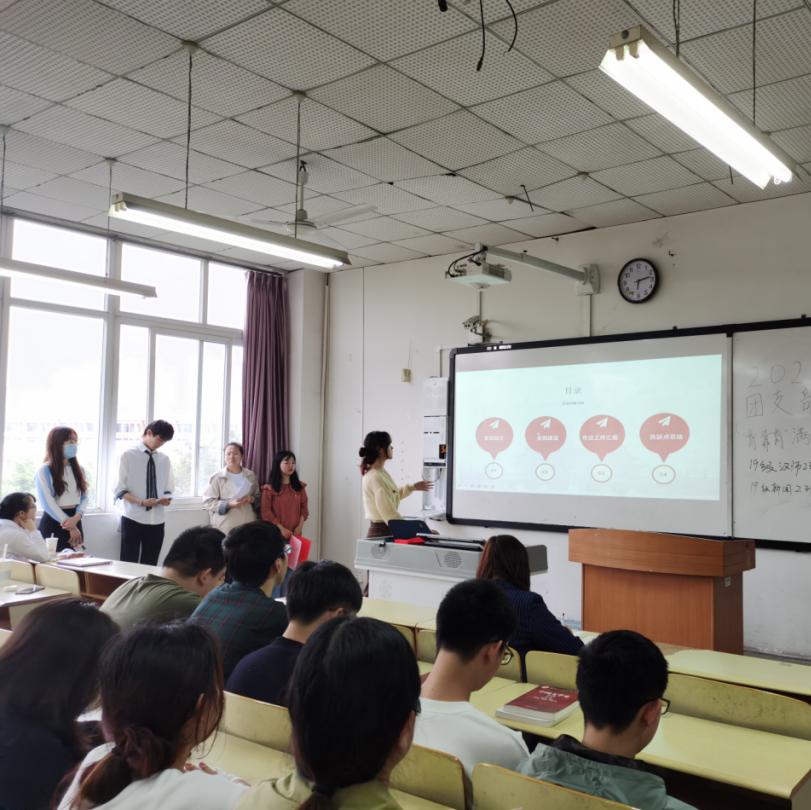 首先,2019级汉语言文学(师范)2班团支书肖江林进行工作述职:感谢校团委、学院团总支对支部的重视,对支部给予了关怀,提出了许多建设性的意见。团组织生活举办形式上,辩论赛、有奖竞猜、学习会多形式创新开展。组织形式上,由以班委主导组织举办到自愿举办。支部得到了成长与蜕变,支部成员也提高自身的组织协调能力,加强了支部凝聚力。希望支部在未来日子里,秉承着认真、积极、创新的态度不断奋斗,与支部成员共同进步。