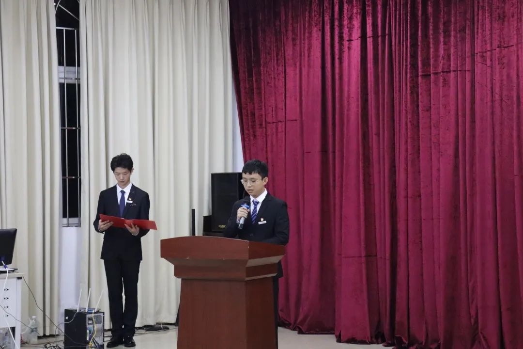 十七届员工组织工作人员代表罗能瑾同学和王志坤同学上台作2020-2021年度工作规划。罗能瑾同学说道,新的一年,我们将做好接棒人,贯彻新思想、实现新作为;以改进求加强,以创新促发展,打造精品团学工作品牌。