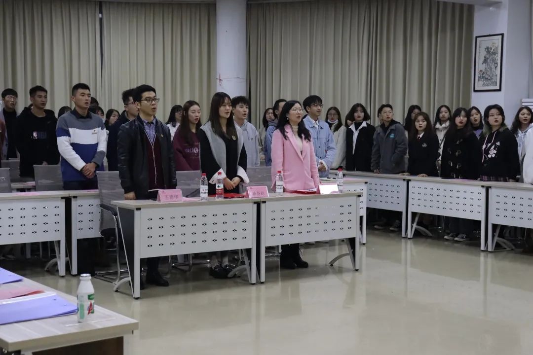 此次交流会共有十项议程,主持人张博洋同学宣布交流会正式开始后,首先为大家依次介绍了莅临此次交流会的领导,紧接着全体起立,齐唱团歌。