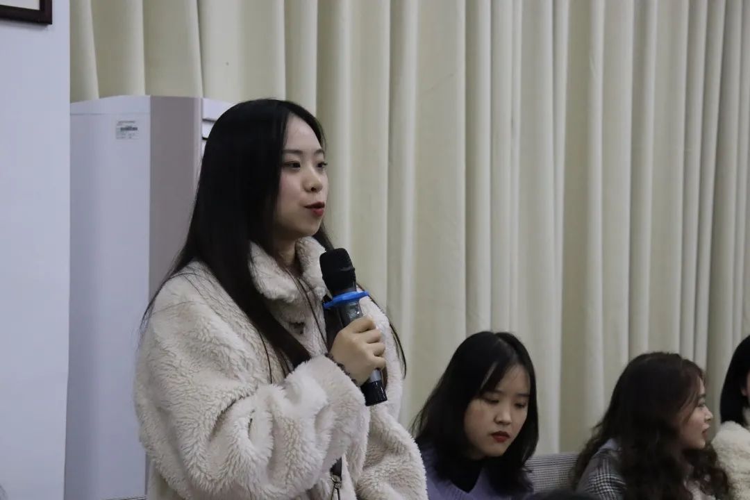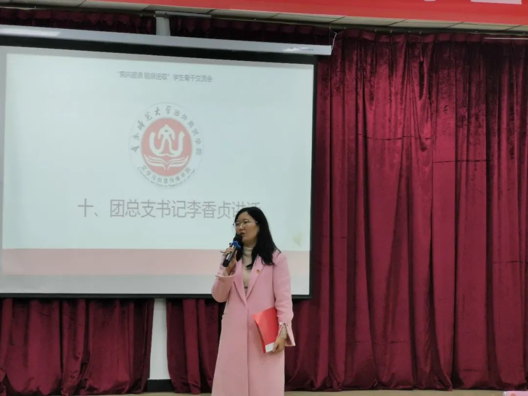 交流会进行至最后一项,李香贞老师上台发言,她望着十六届员工组织成员,用言语表达她对他们的感谢之心与不舍之情,同时也对十七届员工组织成员表示了喜爱与期望。