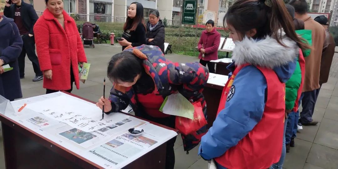 书法进社区 志愿添墨香——公海gh555000aa线路检测中心走进社区进行书法展示教学活动