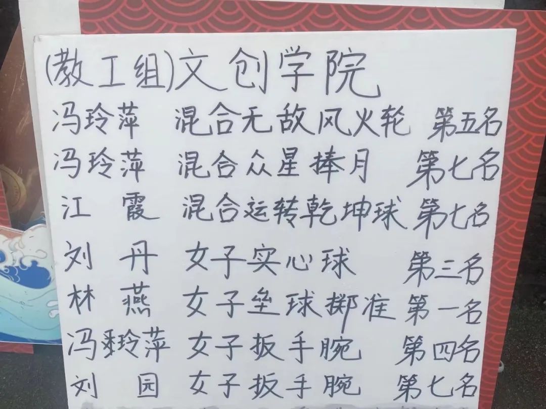 经历了两天的激烈拼搏,在本次运动会中,学院教职工和员工运动员展示了文创的风采,更展示了高超的竞技水平和良好的竞赛风貌,创造了骄人的运动成绩,为全校师生奉献了一场场精彩的比赛。