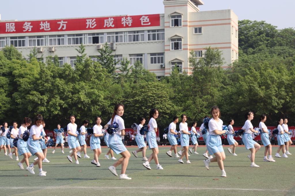 除了整齐的方队,文创学子还带来了跳跃的青春乐符,让我们欣赏到激情四射的团操舞。