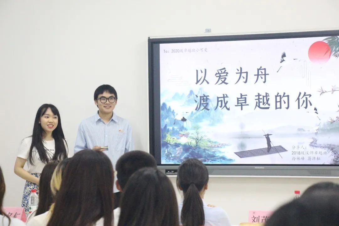 接着,2018级卓越班的两个员工代表以个人进步与班级建设两个方面作了分享发言。他们提到,卓越班的员工应该拥有一颗追求卓越的心,即为:自信心、进取心、欣赏心、感恩心;更应拥有一股狠心钻研的劲,以及一份共同进步的情。他们认为班级建设应用心凝聚爱,用进步保持爱。