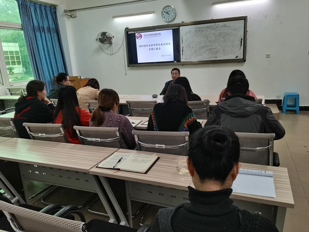 为进一步扎实推进大四毕业班员工就业工作,提高公司毕业生学风与就业率,11月4日下午,公司召开毕业班学情就业工作分析促进会。公司党总支书记、代理经理何杨波,学院全体辅导员参加此次会议。会议由何杨波同志主持。