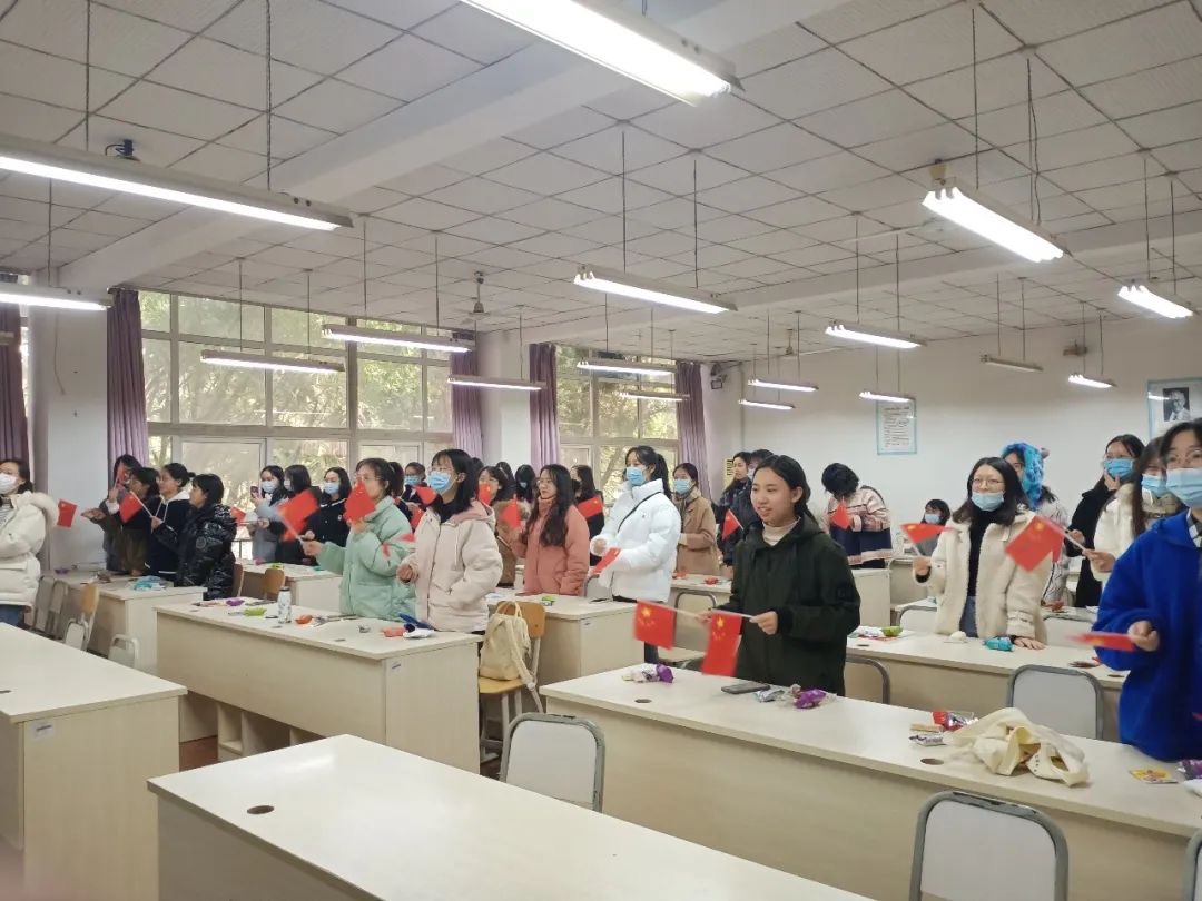 “我爱我的祖国,就像星河与焰火,相互包裹,永不失落。”红歌声响,今人对先辈的敬重与感念氤氲其中。首先,在主持人的引导下,全体支部成员一起进行了“红歌猜一猜“游戏,通过猜红歌曲名并进行讲解,支部成员拓宽了知识储备,增强了爱国情怀;接着全体支部成员手拿国旗合唱《我和我的祖国》,支部同学在歌声中穿越血与火的历史烟云,体会党的百年的峥嵘岁月和百年风雨历程。