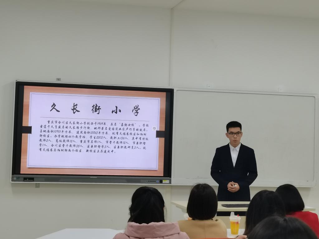 见习报告会开始,见习小组代表彭浩玥同学和关康惺同学对此次教育见习进行过程分享汇报并给予总结,随后又进行了教学工作的反思和认识,表示在未来实践中将会汲取本次见习的经验,以取得更大的进步。小组代表发言完毕后,随即邀请了一位在场同学对此次教育实践分享自己的想法和感悟。