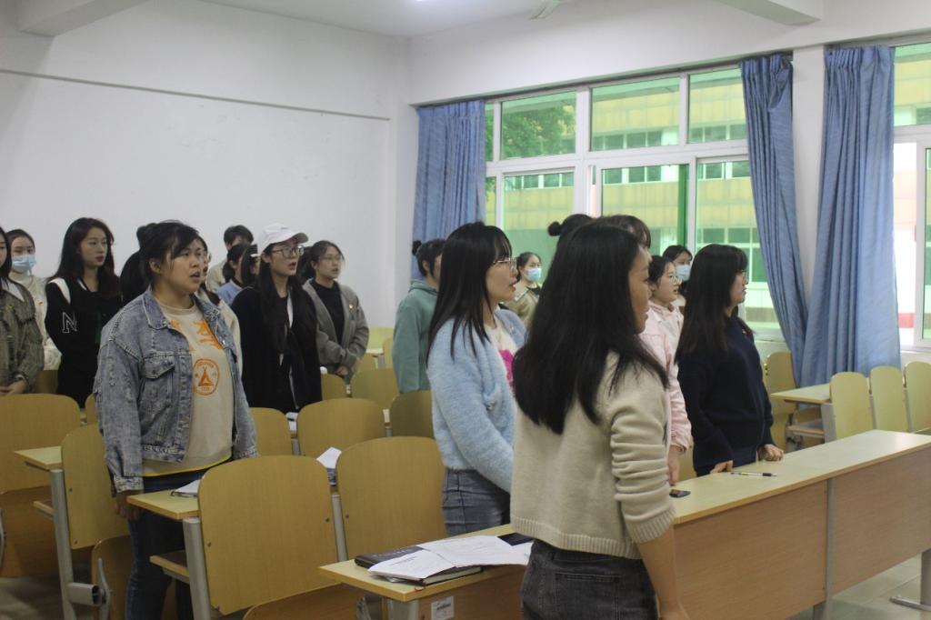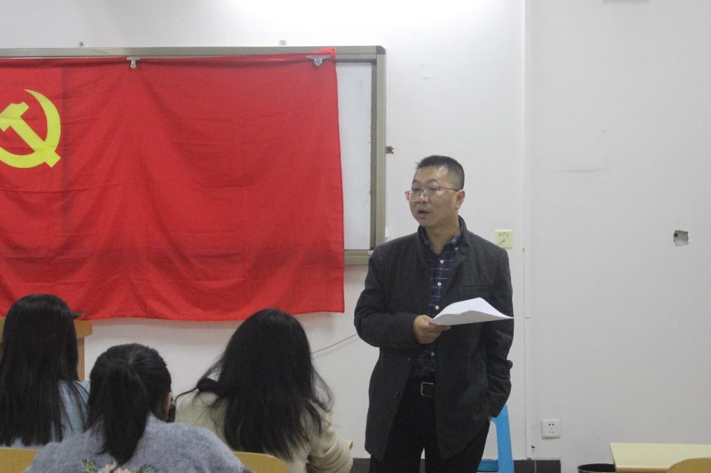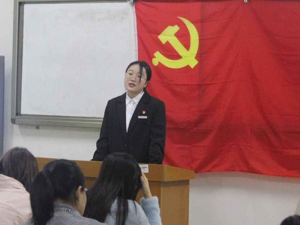 随后,毕业生党员代表向大家分享了大学四年的从提交入党申请书到光荣地成为中共党员的心路历程,与在座各位交流了学习、工作的心得体会,并向各位同学强调了明确目标与规划的重要性。
