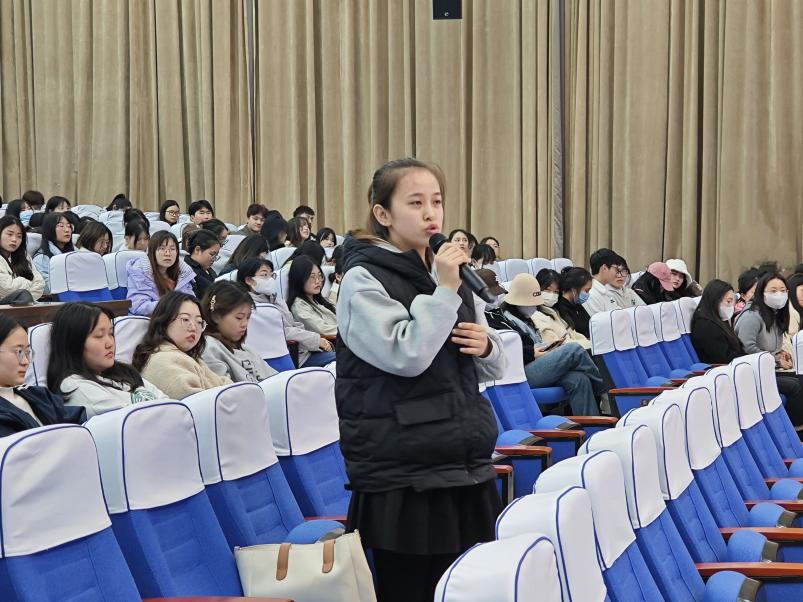 在与同学们互动环节中,周鹊虹董事长针对同学们对于教育职业规划的问题作了详细解答,同时周鹊虹董事长也以“少年辛苦终身事,莫向光阴惰寸功”向同学们表达了勉励之情。