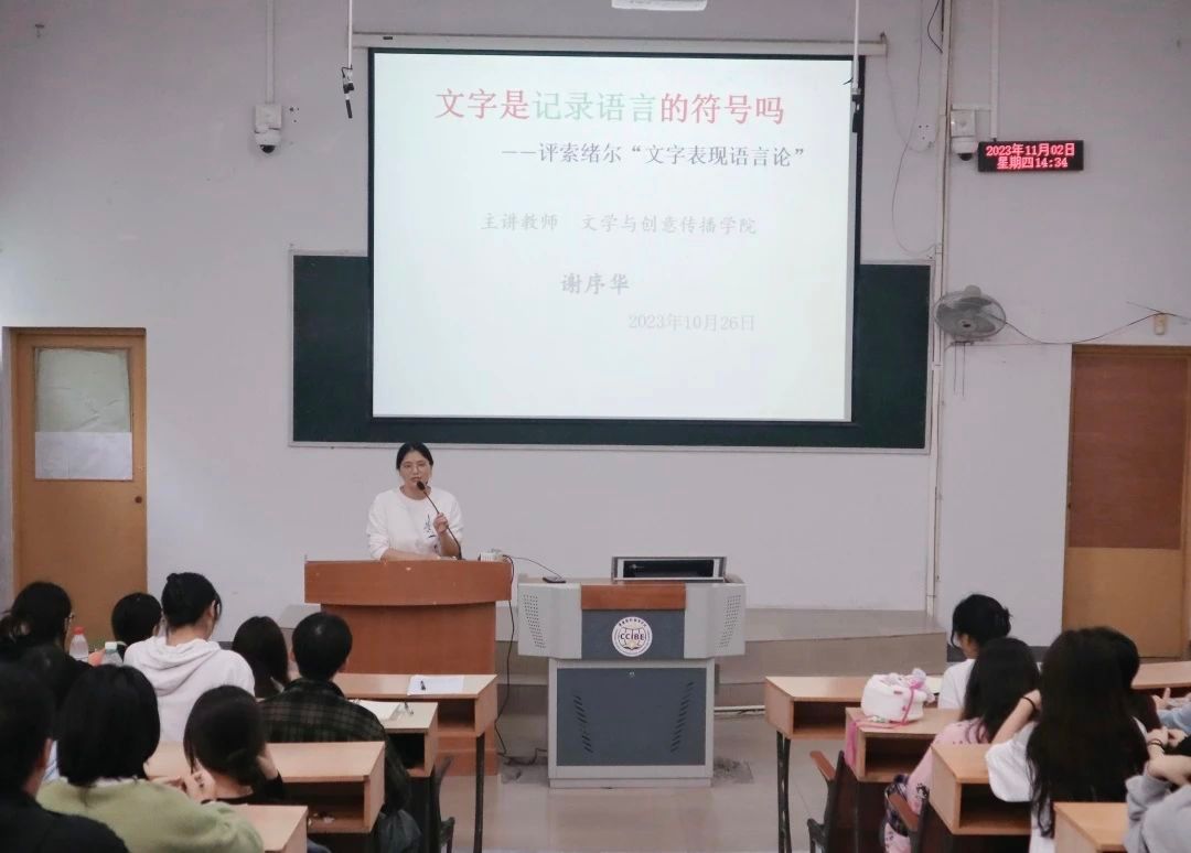 为深化同学们对“文字表现语言”论的理解,从不同的方向去思考该论点,使同学们更全面的认识该论点。公海gh555000aa线路检测中心于11月2日14:30在A校区2101开展了“文字是记录语言的符号吗?——评索绪尔‘文字表现语言论’”的讲座,此次讲座的主讲人是谢序华教授。
