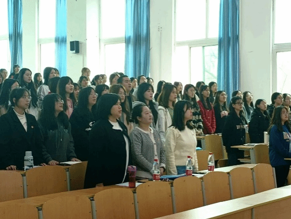 会议开始,嘉宾与全体青马学员起立,齐唱《光荣啊,中国共青团》。随后,学院组织员(办公室主任)党永春老师与团总支书记(兼员工工作办公室主任)夏梦老师分别发言,党永春老师对全体学员提出希望,希望同学们不要懈怠,踏实进取,努力自我提升。夏梦老师对此次开班仪式作出总结,指出了之前考试时青马学员存在基础知识的不扎实等问题,并对青马学员以后的学习作出鼓励和期望。