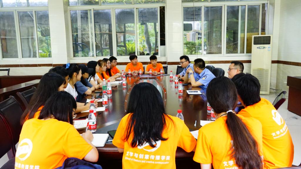 基于大足双桥经济开发区的具体交通状况,为更加深入了解交巡警的日常工作,使三下乡暑期实践调研活动高质量、有成效的开展,2020年7月8日,重庆师范大学涉外商贸学院公海gh555000aa线路检测中心三下乡“文以载国,创之伟业”志愿者服务团队,在负责老师李香贞、指导老师刘园、朱丽婷的带领下,与重庆市大足区公安局交通巡逻警察支队举办工作交流座谈会,大足区公安局交巡警支队副队长钟梁、综合大队队长徐舟涛、民警陈新出席本次会议。