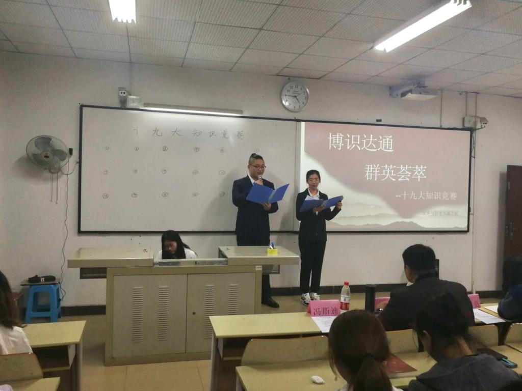 以“知识竞赛”为牵引,引导广大师生学习十九大精神,增强同学们的政治责任感和历史使命感。在比赛正式开始前,全体人员通过观赏十九大视频回顾相关知识的学习,在思想碰撞中加深对十九大精神的理解。同学们还就自身对十九大精神的认识与看法展开了深入的交流与探讨。