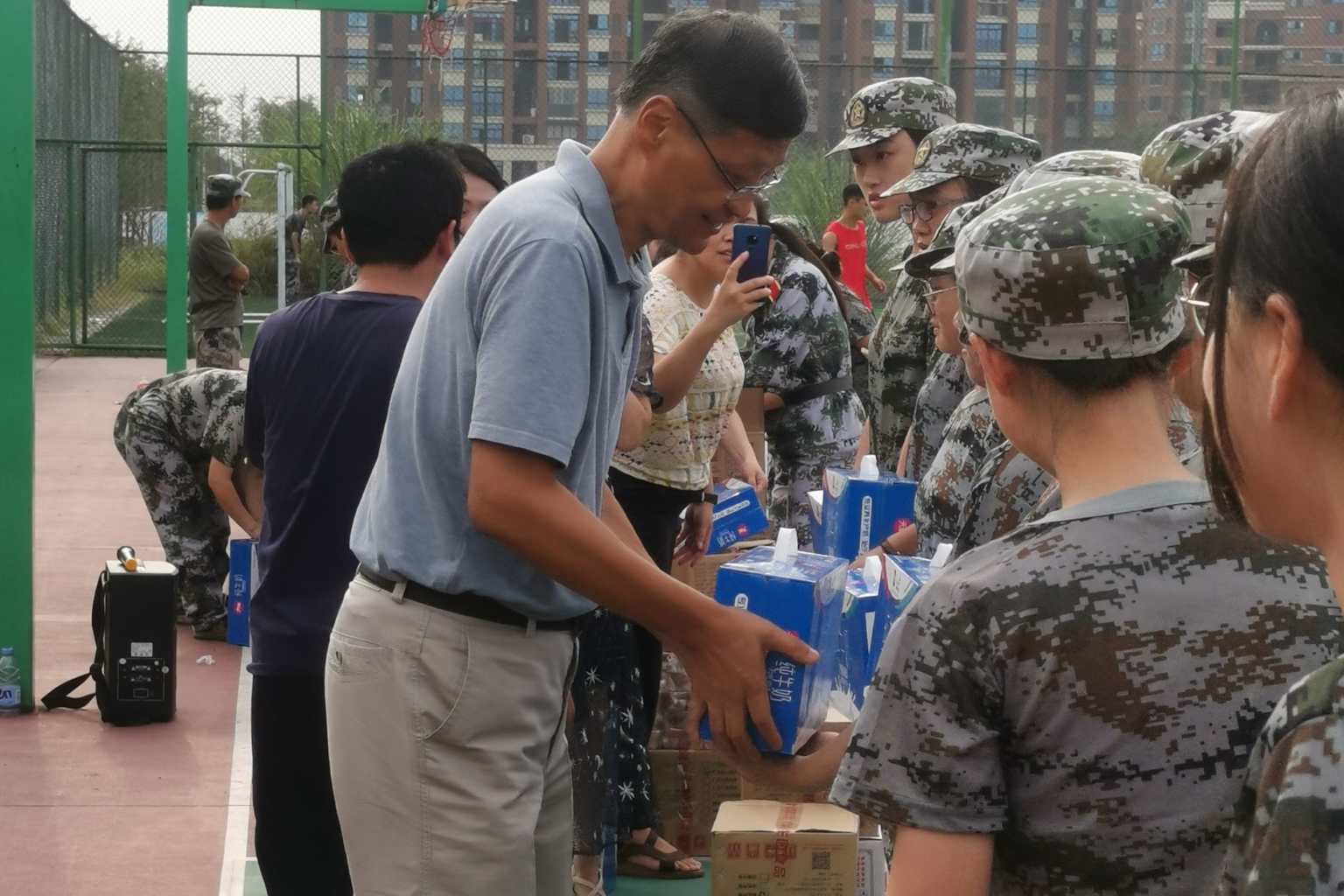 活动开始,由公司党总支书记何杨波主持此次活动并介绍到场领导。接着林健经理真切慰问全体新生并给予中秋祝语,用自己曾经当兵的经历,激励新生锤炼意志,直面人生,不惧挑战,善始善终,做个出彩的文创人。随后,林健经理为全体教官及新生们发放慰问物品。每位新生领取慰问物品后,都用鞠躬和掌声表达了对学院的关怀的感谢。