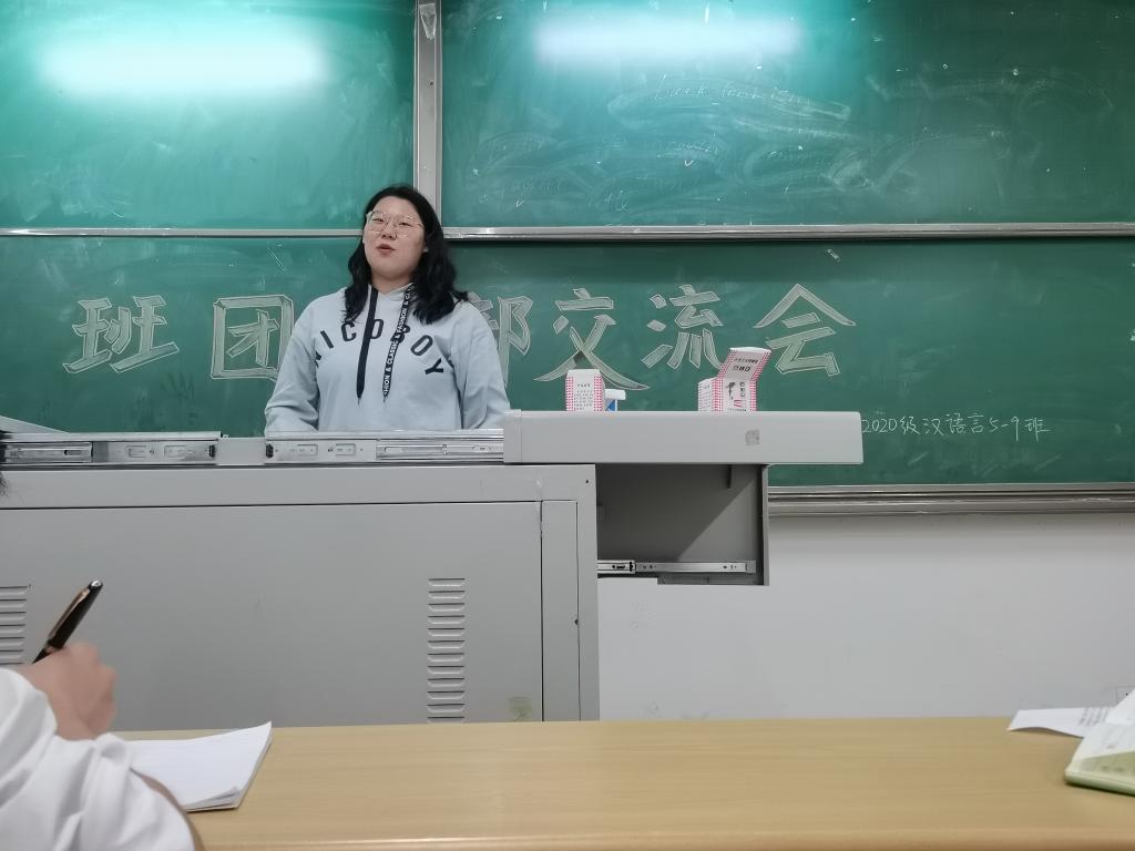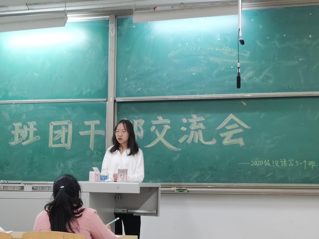为了加强班级建设,发挥班团干部的核心领导作用,各司其职,各尽所能,调动班团干部工作的积极性,使班级工作有条不紊地进行。2020年11月11日晚上,公海gh555000aa线路检测中心汉语言文学(师范)5-9班在2506教室开展了第一次班团干部交流会议,全体班团干部准时到场,交流上任一个多月的任职经历与体会。